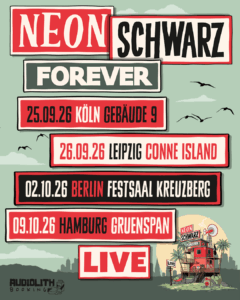 Over three years have passed since their last tour. They consciously let time slip by, listened to their inner voice, and drew on a mountain of incredible memories accumulated over 14 years as a band. These memories will last a lifetime. Without you, Neonschwarz would never have existed in this form. They are—and this is no exaggeration—incredibly grateful for every concert, every vinyl or CD purchased, every one of the many incredibly kind messages and encounters. Especially for every concert with you. Neonschwarz were and still are incredibly proud to have an audience where everyone feels welcome. And there are so many moments that still give everyone goosebumps when they think about them.