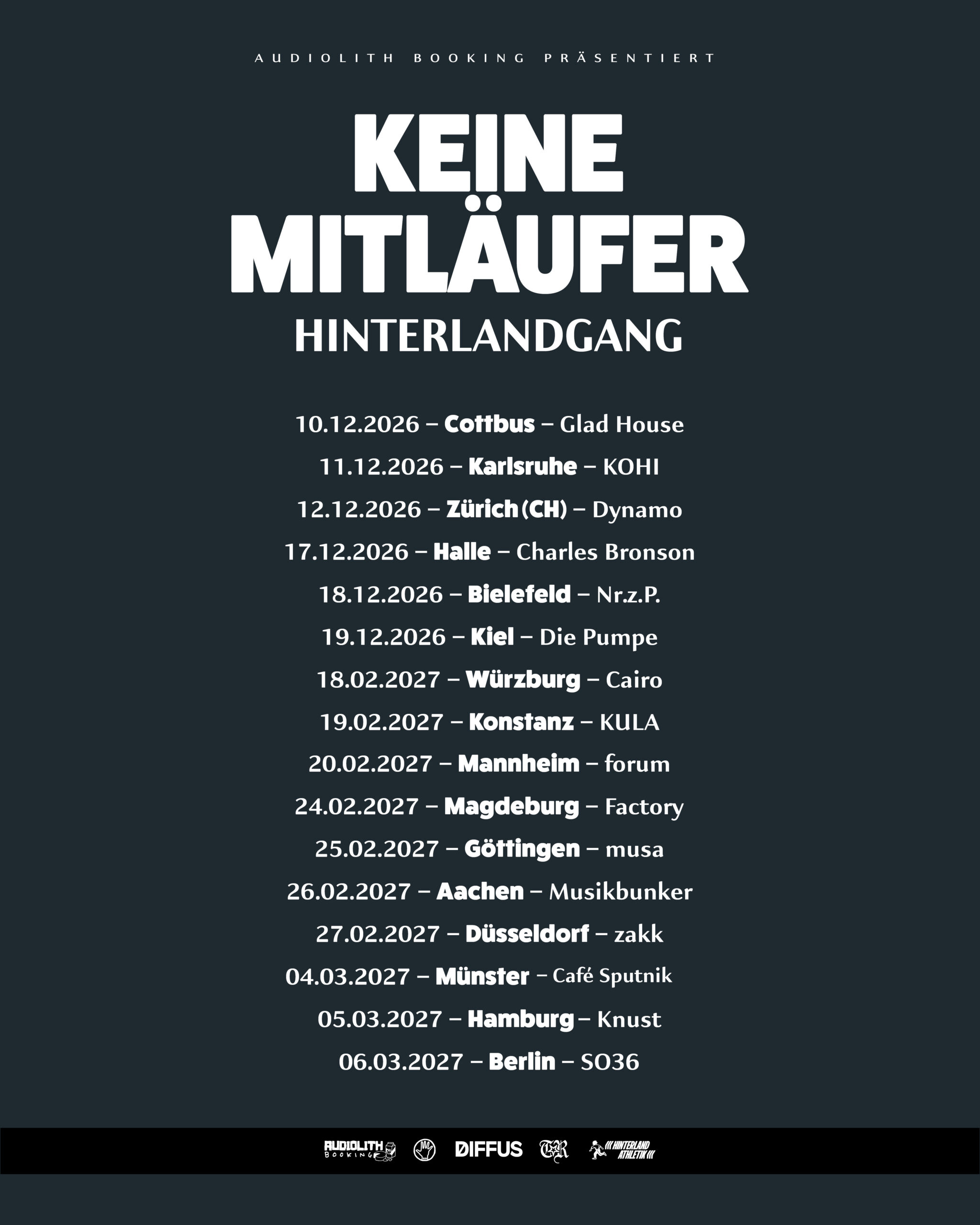 präsentiert von DIFFUS, True Rebel, Hinterland Athletik, Audiolith Records und Audiolith Booking